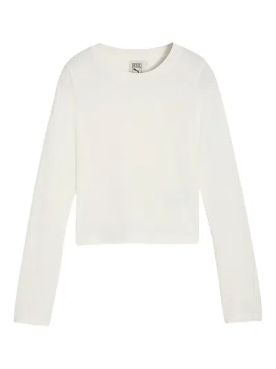 X Rosé Logo-detail Cropped T-shirt In White
