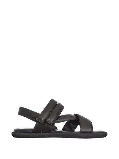 Leather Flat Sandal In Black