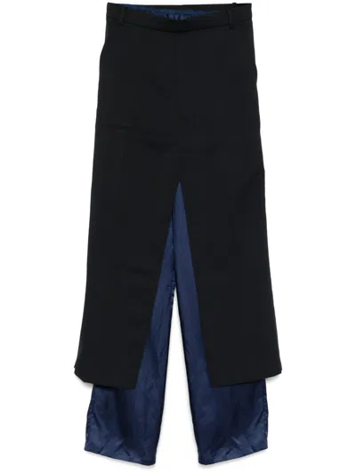 Multicolor Check Trousers Upside Down Midi Skirt In Blue