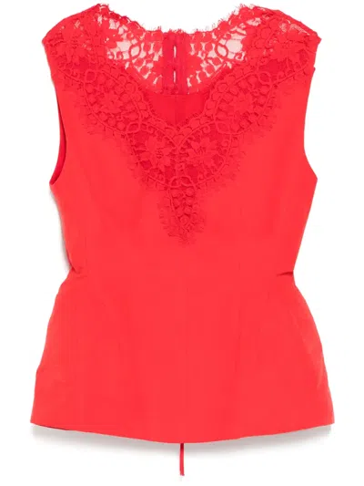White Hourglass Sleeveless Top In Red