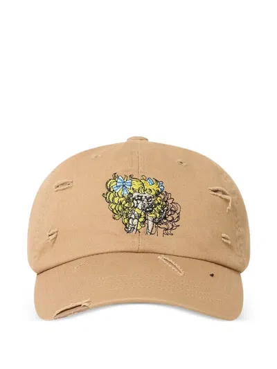 Crying Girl Distressed Baseball Cap In Brown