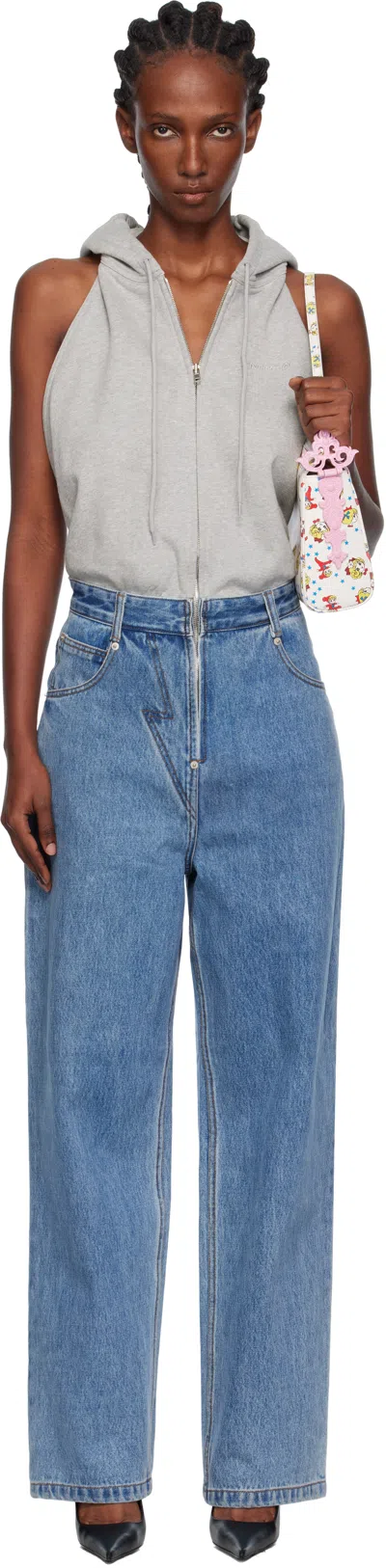 Gray & Blue Halter Hoodie Denim Jumpsuit