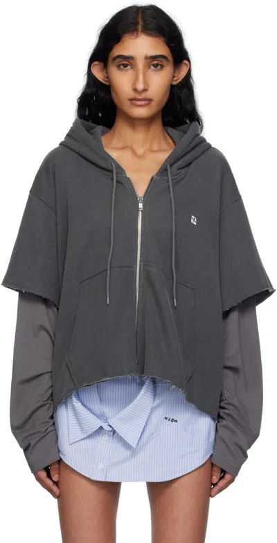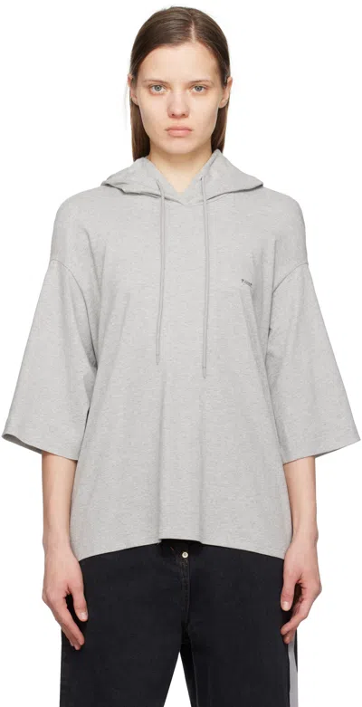 Gray Square Half Sleeve Hoodie In Dark Gray