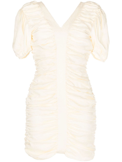 Beige Scrunchie Sleeve Jersey Turtleneck In Neutral