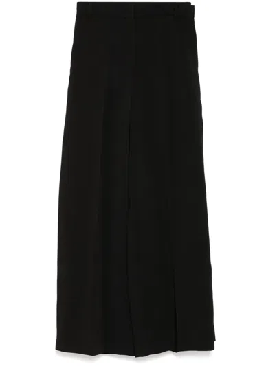 Navy Five-pocket Denim Midi Skort In Dark Blue