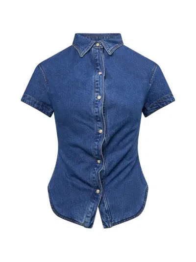 Short-sleeve Denim Shirt In Blue