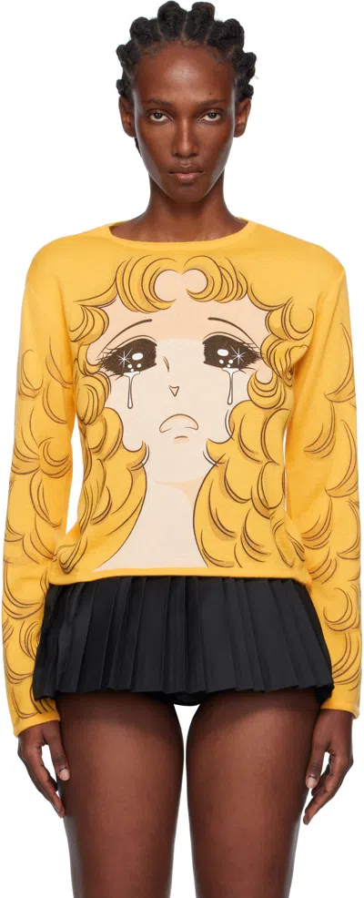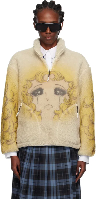 Yellow & Beige Crying Girl Half Zip Up Fleece Sweater In Multi