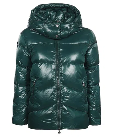 Solid Color Down Jacket With 2 Pockets And Hood In Black