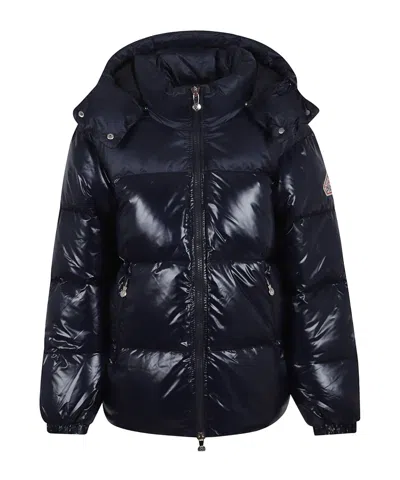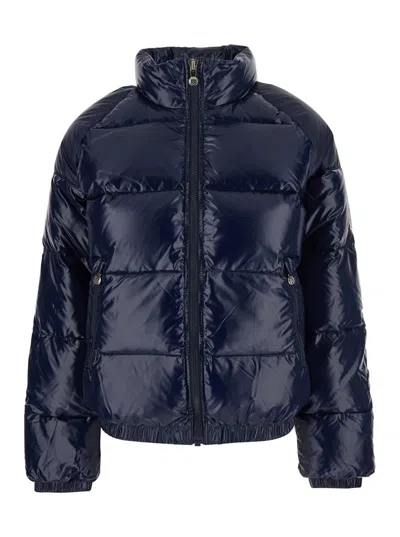 'sten' Blue Down Jacket With Drawstring Hood And Logo Patch In Technical Fabric Unisex