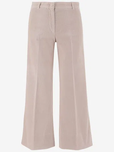 Corduroy Cropped Trousers With Flared Leg In Brown