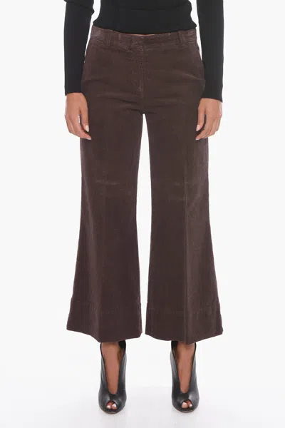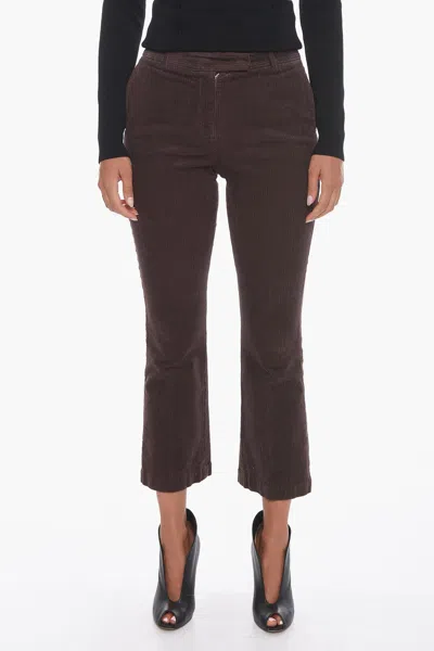 Corduroy Cropped Trousers With Flared Leg In Brown
