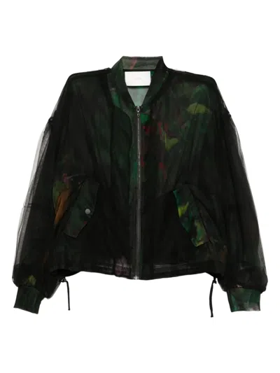 花卉印花薄纱飞行员夹克
