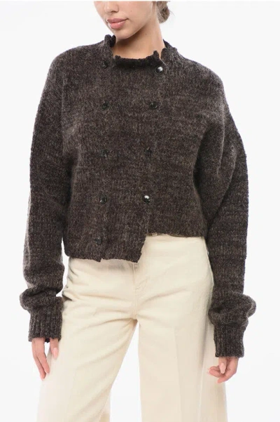 Asymmetrical Cut Double Breasted Cardigan In Brown