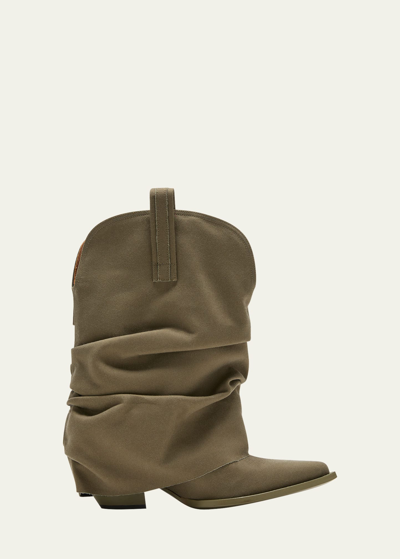 White Mid Cowboy Denim Sleeve Boots In White Denim