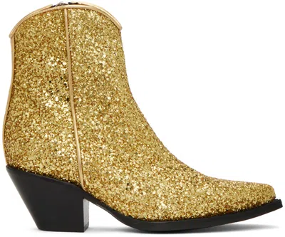 Skinny Glitter Zip Cowboy Ankle Booties In Gold Sparkle