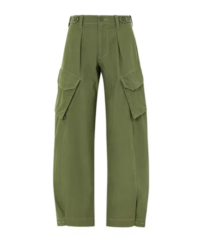 Cotton Barrel-leg Cargo Pants In Green