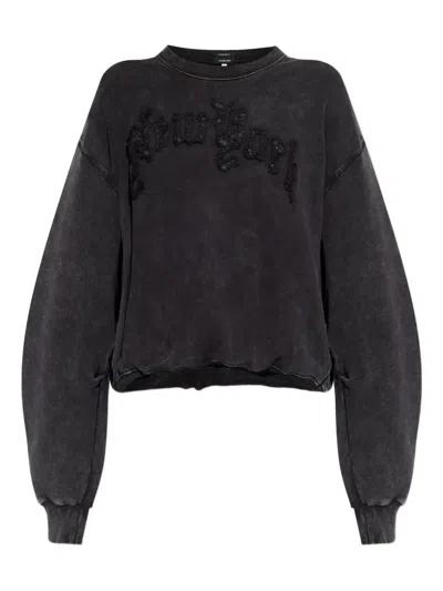 Faded Navy Blue Sweatshirt In Cotton In Black