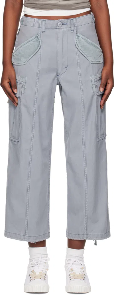 Blue Cropped Cargo Pants In Faded Steel Blue Can