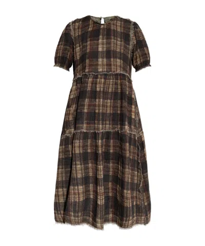 格纹磨损边连衣裙