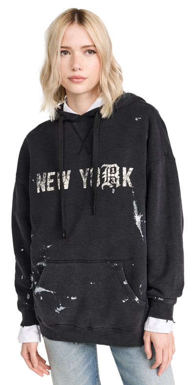 Oversize Paint Splatter New York Graphic Hoodie In Black
