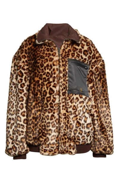 Oversize Faux Fur Reversible Bomber Jacket In Animal Print