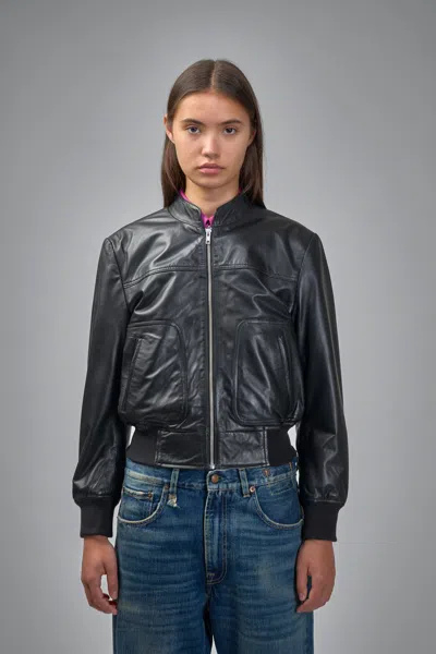 Tan Shirred Oversized Leather Bomber Jacket In Brown