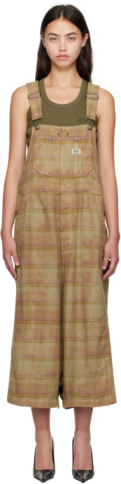 Overdyed Plaid Cotton Flannel Jumbo Overalls In Brown