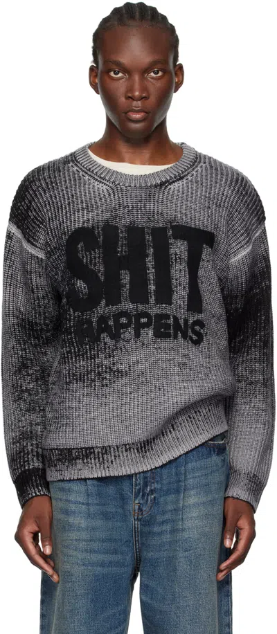 Black & Gray Boyfriend Sweater In Distressed Black