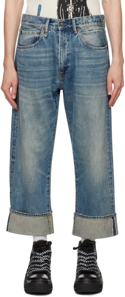 Blue Damon Pleated Wide Leg Jeans In Lennon Blue