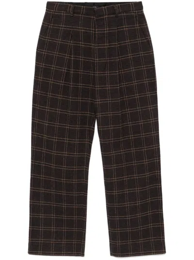 褶饰格纹长裤