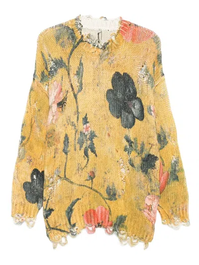 Yellow Printed Oversized Sweater In Brown