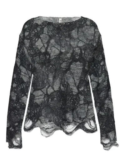 Distressed Oversized Crystal Pin Sweater In Black