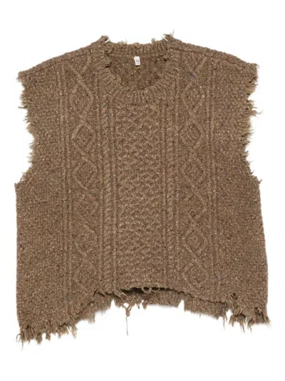 Brown Wool Boyfriend Cable Sweater Vest