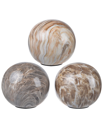 Set Of 3 Marbleized Ball Accents In Brown