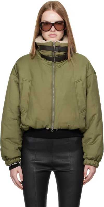 Green Kinsley Leather Buckle Padded Bomber Jacket In Brown