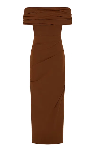 Camille Off-the-shoulder Stretch-taffeta Midi Dress In Brown