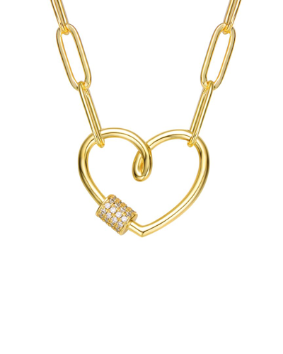 Rg 14k Gold Plated With Pave Diamond Cubic Zirconia Heart Layering Necklace In White