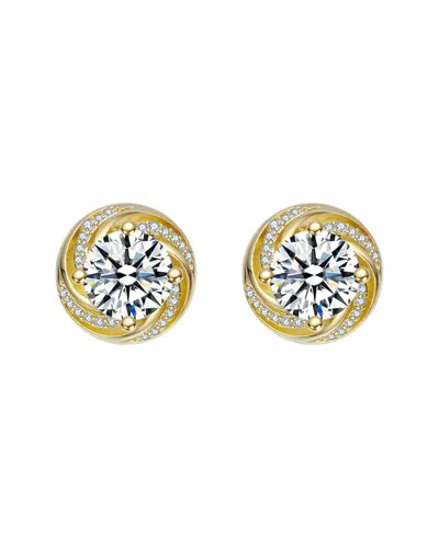 14k Gold Plated And Cubic Zirconia Floral Stud Earrings