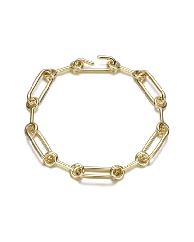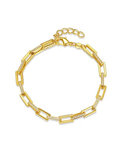 14k Gold Plated With Clear Cubic Zirconia Chain Bracelet In Brown