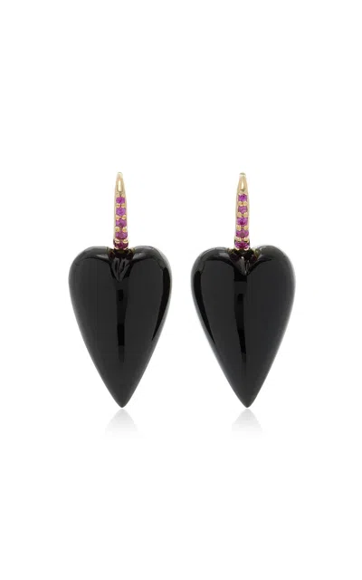 14k Yellow Gold Ruby And Onyx Earrings In Black