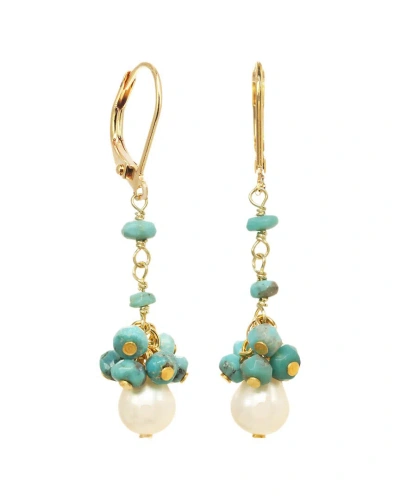 14k Plated Turquoise Fringe Earrings