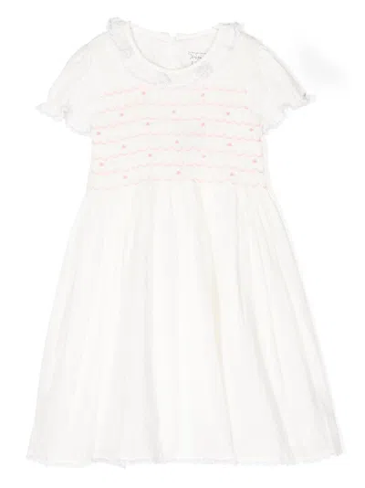 Babies' Girls Swiss Dot Smocked Dress In Ivory
