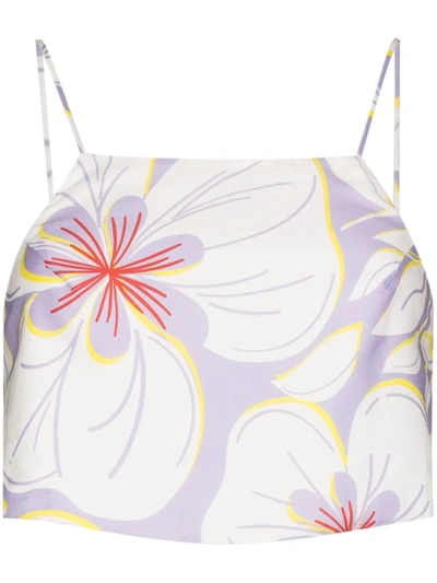 Cropped Floral-print Cotton-voile Top In Weiss