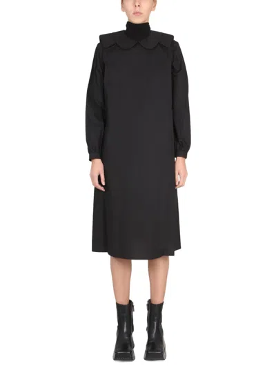 Relaxed Fit Midi Shirt Dress With Claudine Collar In Black