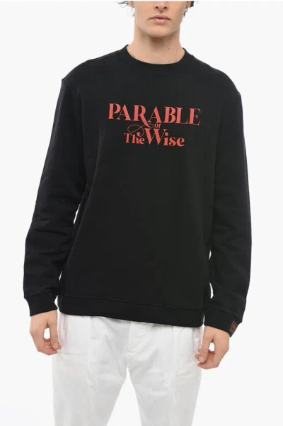 Feece Cotton Crew-neck Sweatshirt With Print In Black