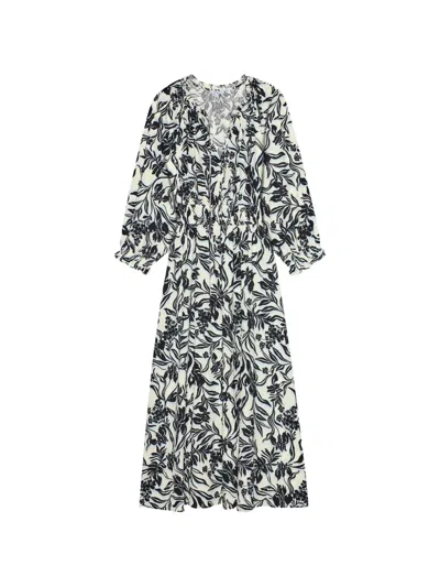 Paio Print Three-quarter Sleeve Cotton Midi Dress In Multi
