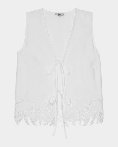 Oregon Embroidered Sleeveless Tie-front Blouse In White