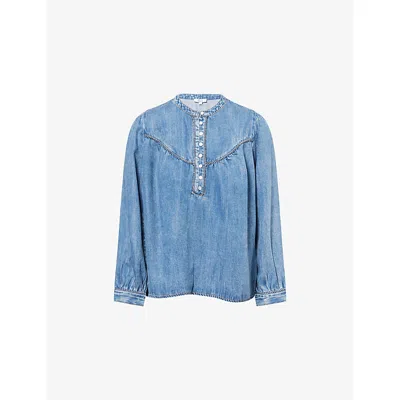 Womens Blue Stone Sunna Puffed-shoulders Woven Blouse