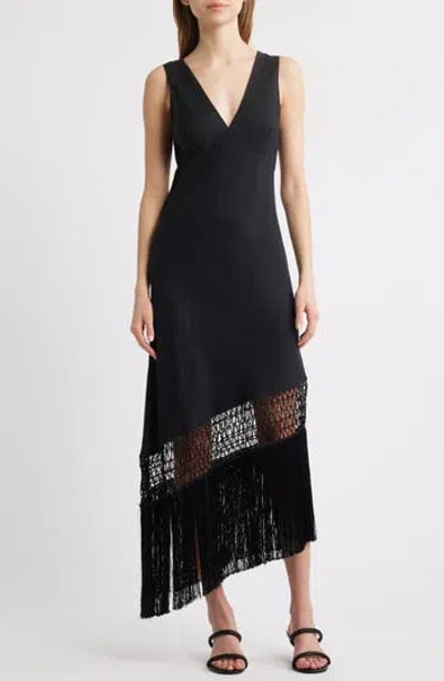 Tamara Asymmetric Sleeveless Fringe Accent Dress In Black