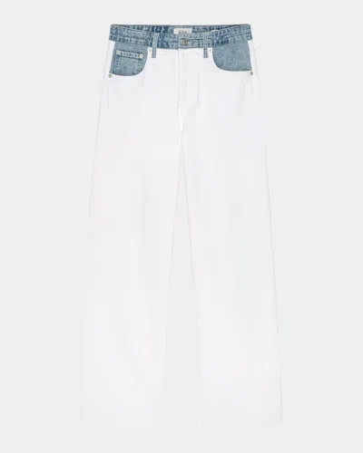 The Getty High Waist Wide Leg Crop Jeans In Ecru Patchwork